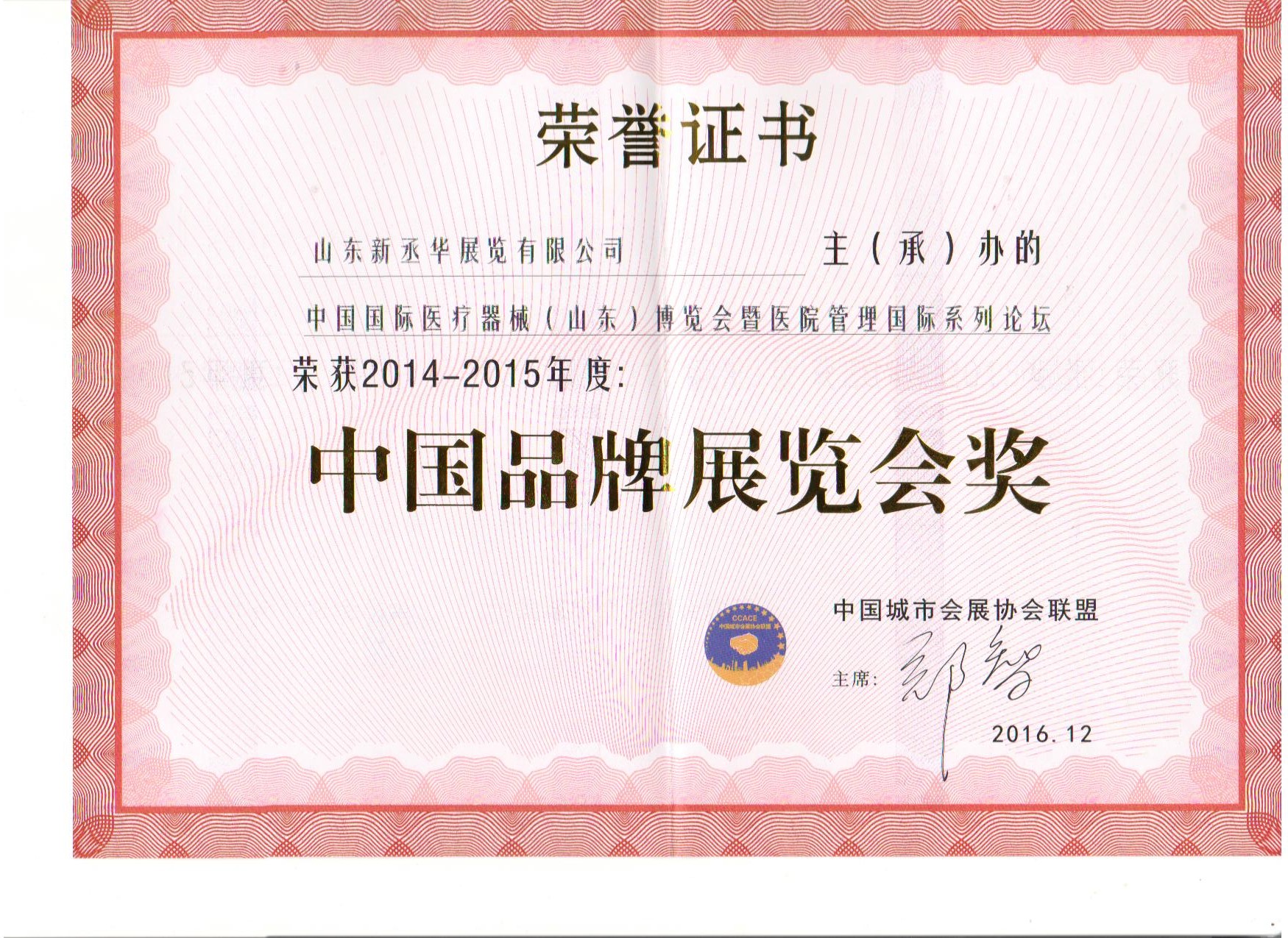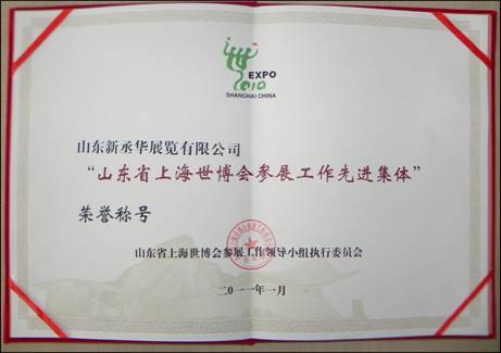 ,先后荣获了“济南市建功立业先进单位”、 “济南市优秀会展企业”“山东省会展行业优秀会展组织者”、“2010年度中国十大优秀会展公司”、“济南市先进民营企业”“山东省服务名牌”等近三十项荣誉称号。